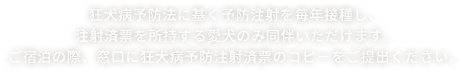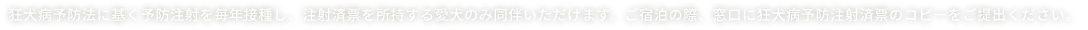 お医者様からの猶予証明書をお持ちいただければご宿泊は可能です。(公共の場での他犬との接触はご注意ください)